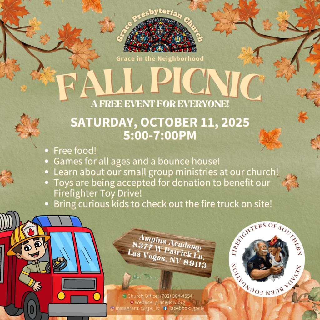Join us for a day of fun and community at our Fall Festival! Enjoy free food and games suitable for all ages, including a bounce house for the little ones. Discover more about our small group ministries and get involved in meaningful ways. We are also collecting toys for our Firefighter Toy Drive, so feel free to bring donations. Don’t miss the chance for curious kids to explore a real fire truck on site. We can’t wait to see you there!